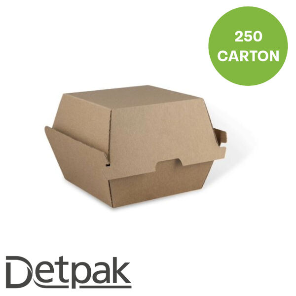 The Detpak Endura Burger Box is a strong, eco-friendly packaging solution ideal for burgers, snacks, and takeaway meals. Measuring 105mm x 102mm x 83mm, it’s made from corrugated fluted board with a natural matte finish and uncoated lining. Microwave and refrigeration safe, this brown burger box is durable, plastic-free, and perfect for foodservice businesses looking for sustainable packaging.